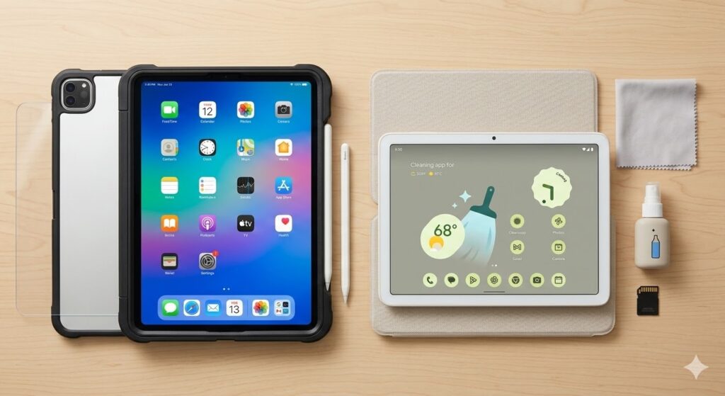 タブレットも長く使うとゴミが溜まります。月に一度、以下の2点をチェックするだけで、数年後のサクサク感が変わります。